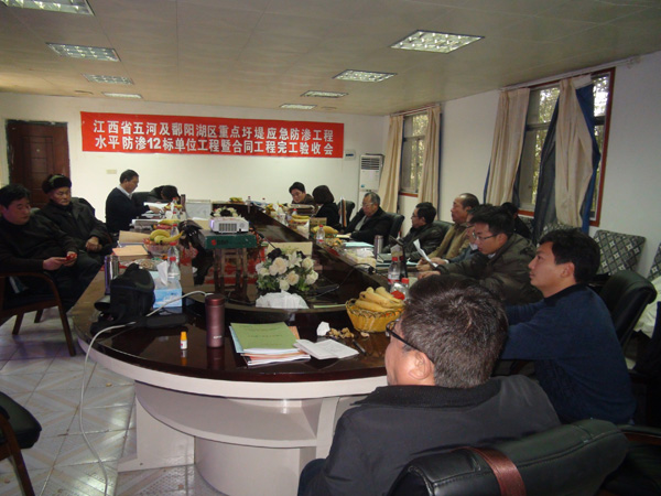 2012年1月10日,江西省五河及鄱陽湖區重點圩堤應急防滲工程建設項目部在江西省共青城市主持召開了水平防滲12標單位工程暨合同工程完工驗收會,并順利通過了單位工程暨合同工程完工驗收。驗收會由省河湖局許盛豐主持。公司吳鐵凡總工程師、工程部郭洪有經理參加了驗收會。