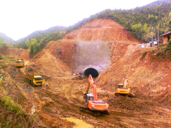 高倚四級(jí)水電站位于遂川江北支江高倚段,壩址座落在江西省遂川縣大坑鄉(xiāng),是贛江水系一級(jí)支流遂川江北支流梯級(jí)開發(fā)電站群中的一座。該水電站是一座以水力發(fā)電為主的低壩引水式小型水電站工程,安裝3臺(tái)軸流定槳立式水輪發(fā)電機(jī)組,總裝機(jī)容量7500千瓦,多年平均發(fā)電量2466萬千瓦時(shí)。水庫(kù)正常蓄水位134.5米,總庫(kù)容224.3萬立方米,主要由擋水壩建筑物、引水建筑物、廠房建筑物、防護(hù)工程及并網(wǎng)輸電線路五部分組成,為小(Ⅰ)型水電站工程,工程等別為Ⅳ等。大壩壩軸線總長(zhǎng)269米,引水隧洞總長(zhǎng)1414.9米,隧洞為無壓城門形斷面,開挖斷面達(dá)60平方米(屬超大型斷面),引水隧洞進(jìn)口支洞長(zhǎng)度42米。