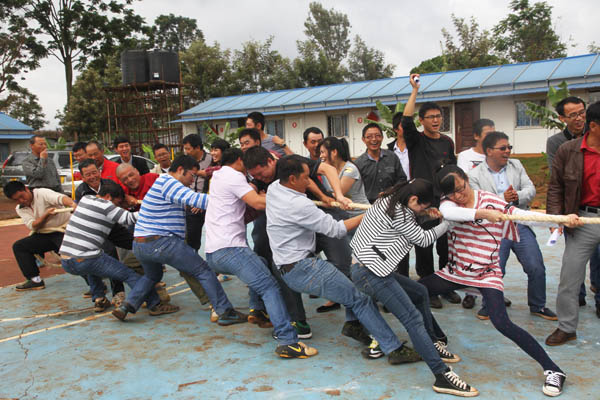 為了凝聚精神,交流感情,2014年12月25日,肯尼亞分公司第一屆迎新聯誼會在雙河正式舉辦。本次聯誼會共設拔河、籃球、CS三項團體比賽項目,乒乓球、象棋、升級三項個人比賽項目及趣味套圈項目,肯尼亞辦事處及各在建項目均組隊參加了比賽。