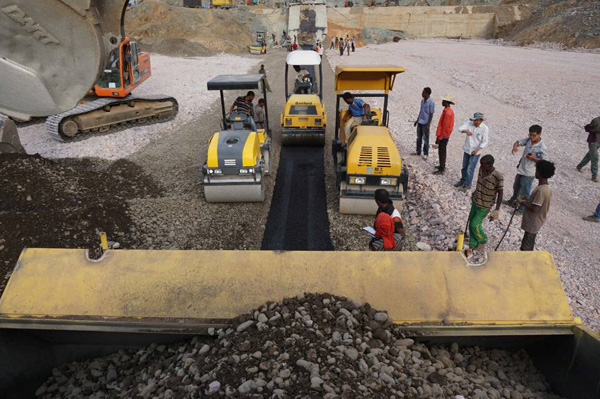 公司高度重視Wolkite瀝青混凝土芯墻的建設,成立了以黃生寶為經理的項目組領導班子,選派了一批技術過硬、經驗豐富、善于學習的技術和操作人員,并從國內專門聘請從事該方面工作的專家親赴現場進行技術指導和把關。在公司董事會的正確領導下,項目部全體成員緊緊圍繞著Wolkite瀝青混凝土芯墻項目全力施工。本著特事特辦的原則,國內后勤組緊急采購發送了一大批施工設備,為項目開好頭打下了堅實的基礎。為了優質高效地完成任務,項目組全體人員精誠團結、夙興夜寐,不計白天黑夜,不管分內分外,取得的成果得到了業主和監理的肯定。從制定施工方案和技術指標,到裝配實驗儀器和施工設備,從悶熱的室內配合比工作,到烈日炎炎下的現場施工,無不凝結著大家的智慧與汗水。