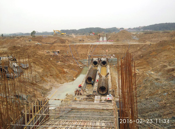 潦河灌區黃沙港倒虹吸管施工現場