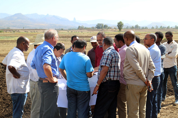 2016年3月20日,埃塞俄比亞聯邦水利能源部部長Motuma Mekesa閣下及副部長Kebede Gerba閣下帶領水利能源部尼羅河灌溉項目協調辦、阿姆哈拉州土地管理局、阿姆哈拉州尼羅河灌溉項目協調辦等項目各參建單位負責人到我公司承建的埃塞俄比亞Ribb一期灌溉項目視察。