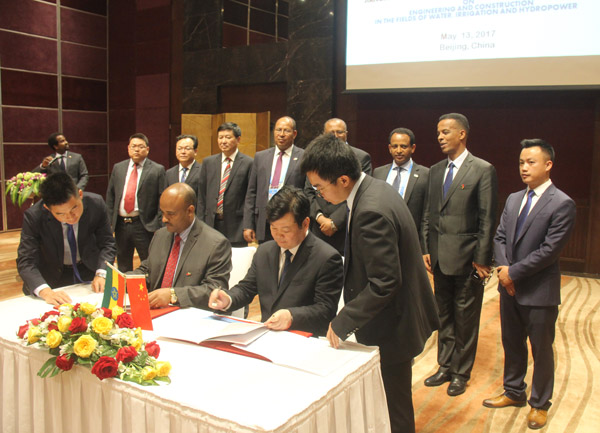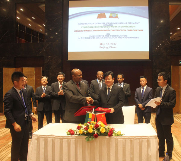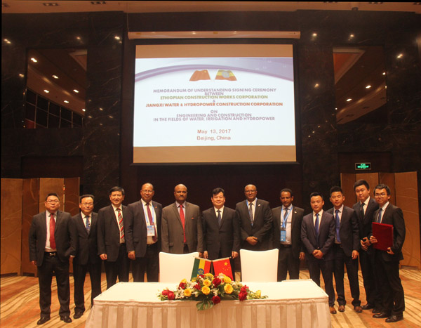 5月13日,在“一帶一路”國際合作高峰論壇分會場北京千禧大酒店,在埃塞俄比亞國防部、外交部、工業部、建設部等六位部長的見證下,公司與埃塞俄比亞建設集團簽署全面戰略合作協議,雙方將在水電站、農田灌溉、城市供水、污水處理等工程建設領域深化合作。根據協議內容,公司將成為埃塞俄比亞水利工程建設領域的優先合作伙伴。