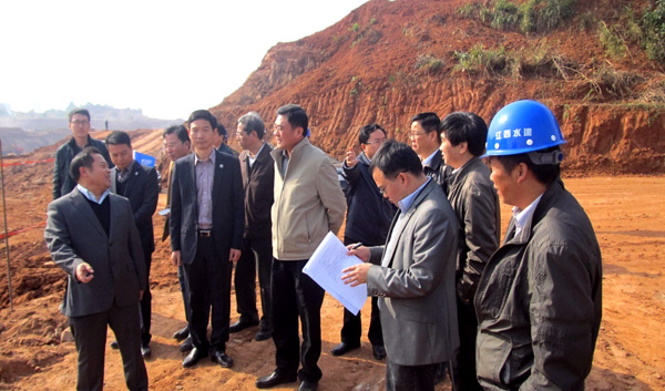 2013年11月20日,江西省萍鄉(xiāng)市市委書記陳衛(wèi)民率市委、市經(jīng)濟開發(fā)區(qū)、建設局等有關部門負責人來到我公司承建的萍鄉(xiāng)市城市防洪應急工程2標分洪河項目檢查指導工作。