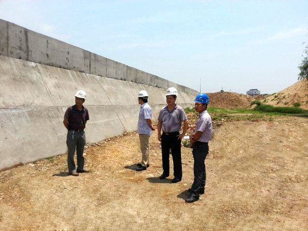 隨后,王總一行又馬不停蹄地趕往江西省五河治理防洪工程鉛山縣城西堤畜牧場至劉家洲段項目施工現場進行檢查指導工作。董事長兼總經理王元旦實地察看了施工現場,仔細了解了工程情況,對項目施工質量作出了肯定的評價。他要求項目部要強化安全意識,加快進度,確保工程質量,按計劃完成并驗收。王總還親切慰問了一線施工人員,提醒項目經理部要做好職工的降溫防暑工作。
