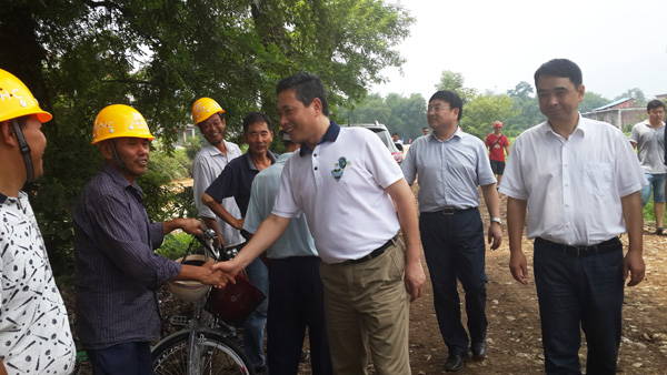 2014年8月8日上午,上饒市委書記陳俊卿一行來到我公司承建的玉山縣樟村鎮(zhèn)防洪工程檢查指導(dǎo)工作。來到施工現(xiàn)場,陳俊卿書記一行頂著炎炎烈日,深入查看并了解了防洪工程的投資規(guī)模和施工生產(chǎn)建設(shè)情況,隨后,項目部經(jīng)理楊小貴對項目完工后將產(chǎn)生的防洪生態(tài)效益作了簡單介紹,陳俊卿書記聽后非常高興,他指出,項目部和承建單位要齊心協(xié)力,加強安全生產(chǎn)管理,確保工程順利完工,早日造福當?shù)匕傩铡W詈螅惪∏鋾涍€詢問了施工人員的生活情況,叮囑項目部既要保證工程施工進度,也要注意防暑工作,讓員工家屬放心。