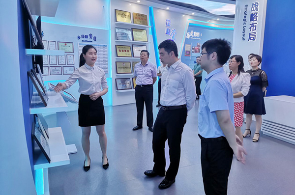 首先,公司副總經理肖凱邀請唐行長一行參觀公司的企業展廳。參觀展廳期間,肖凱副總經理就公司64年以來的發展歷程、公司主要項目成果以及多領域取得的相關成績向各位來賓做了相關介紹。