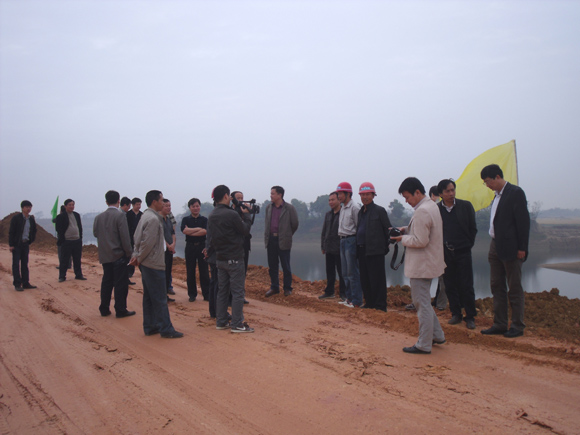 文林副廳長仔細察看了項目施工現場情況,并耐心聽取了我司項目經理雷才文的工程情況匯報。梓埠1標自去年11月份開工以來,目前已完成了馬鞍山電排站、周灣排灌站、堤腳拋石固腳、堤身深層攪拌防滲墻等項目,堤身土方填筑及混凝土預制塊制作正在緊張進行。文副廳長聽完匯報后,對梓埠1標的施工工作提出了幾點要求,一是業(yè)主單位要盡快解決好征地問題,為工程的順利實施創(chuàng)造良好條件;二是施工單位要抓住晴好天氣,加快堤身土方填筑及預制塊制作進度,并加強質量控制。