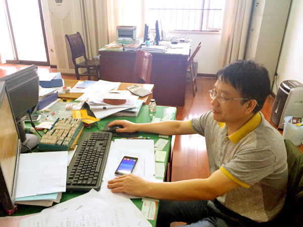 走進(jìn)財(cái)務(wù)部的辦公室,周家煌的辦公桌上的擺設(shè)一目了然:桌面整潔干凈,桌上的文件排放的整齊有序。左上角壘起來(lái)的倆堆書(shū)籍,其一是《財(cái)務(wù)會(huì)計(jì)》、《中國(guó)稅務(wù)》等財(cái)務(wù)專業(yè)的雜志;另一堆書(shū)籍置于頂部的是《計(jì)算機(jī)財(cái)務(wù)管理:財(cái)務(wù)建模方法與技術(shù)》,往下的是諸如《計(jì)算機(jī)辦公軟件應(yīng)用》、《信息時(shí)代的財(cái)務(wù)創(chuàng)新》等。