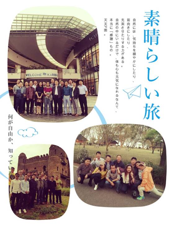 這次非洲之行,需要感謝的人有很多。首先,感謝海外公司對(duì)我們此次出行的精心安排,其次,感謝肯尼亞分公司與埃塞分公司的熱情接待,最后感謝總公司給了我們赴非洲參觀學(xué)習(xí)的機(jī)會(huì),讓我們領(lǐng)略無(wú)數(shù)新事物的同時(shí),也欣賞到了迷人又奇妙的非洲風(fēng)光!